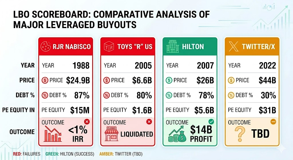 Third, just look at Twitter. Musk's deal loaded $13 billion in debt onto a company that then slashed 80% of its workforce to stay afloat. By 2024, Fidelity had slashed X's estimated value to $9.4 billion - a nearly 80% decline from the $44 billion purchase price. The story of leverage is always the same story. It just keeps finding new characters.